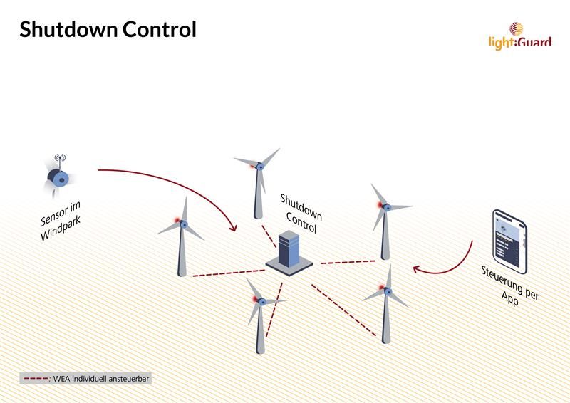 Die Implementierung einer externen Abschaltung sollte den Betrieb so wenig wie möglich belasten. Da viele Windparks aktuell ohnehin zur Nachrüstung einer bedarfsgesteuerten Nachtkennzeichnung (BNK) verpflichtet sind, bieten wir die Shutdown Control als integrierte Gesamtlösung an. Das vermeidet unnötige technische Schnittstellen und optimiert die Hardware-Kosten.