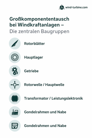 Der folgende Beitrag erklärt, welche Komponenten typischerweise betroffen sind, wie ein Großkomponententausch abläuft, welche Risiken und Planungsanforderungen bestehen – und warum diese Maßnahme zunehmend zum Schlüsselfaktor für den sicheren und nachhaltigen Weiterbetrieb von Windenergieanlagen wird.