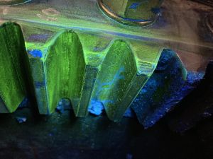 Statt den kompletten Zahnkranz zu tauschen oder zu drehen, setzt ENERTRAG Service auf ein erprobtes und zertifiziertes Verfahren. Verschlissene Zahnflanken werden direkt an der Anlage schweißtechnisch aufgebaut und zurück in den Sollzustand gebracht