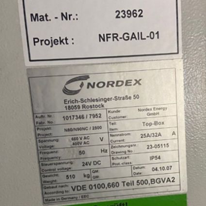 • Verwendet in Nordex-Turbinen – Kompatibel mit N80- und N90-Modellen.