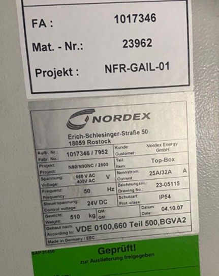 Deckenschrank für Nordex N80, N90 NC / 2500 | Nordex 23962 Nordex 1017346/7952