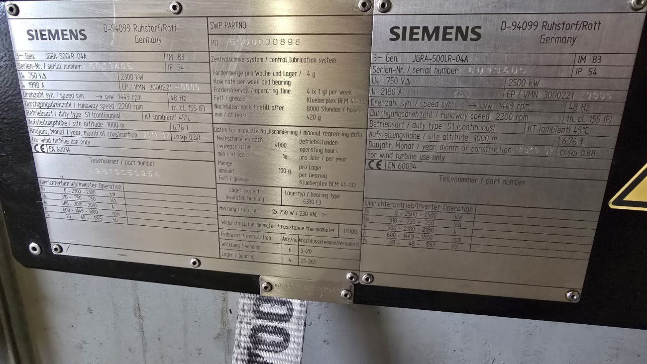 Neuere Siemens-Generatoren mit 2,3 MW