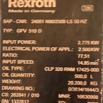 Rexroth GPV 510 D Getriebe – Hauptlager