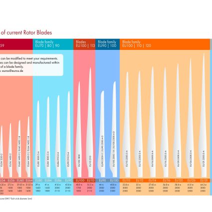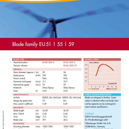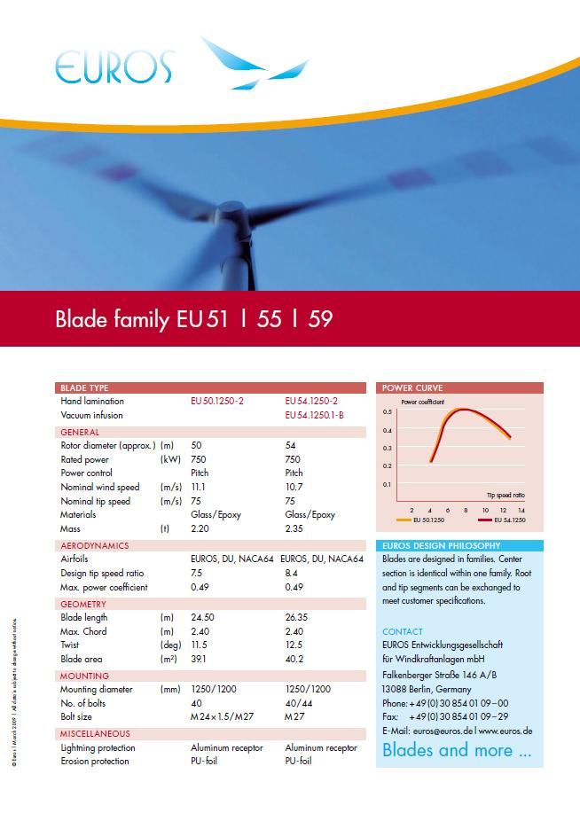 eine nominale Tipp-Geschwindigkeit von 75 m/s. Die Klinge besteht aus Glas und Epoxy und wiegt