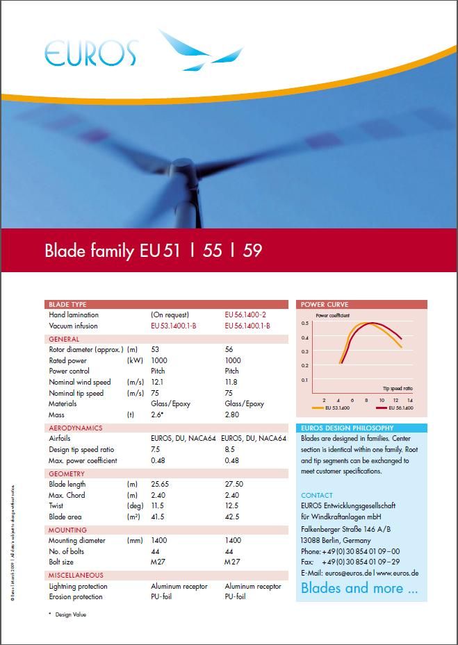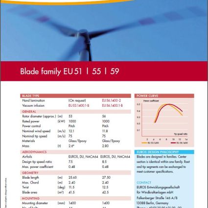 eine nominale Tipp-Geschwindigkeit von 75 m/s. Die Klinge wird von Glas und Kunststoff mit Hand gemacht.